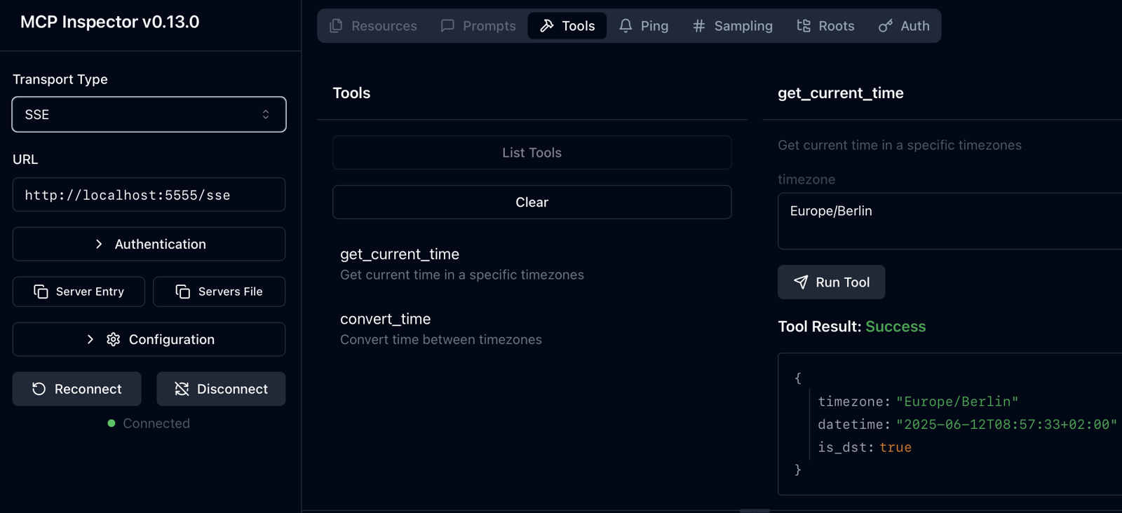 MCP Inspektor: unterstützt sowohl stdio als auch SSE Transport